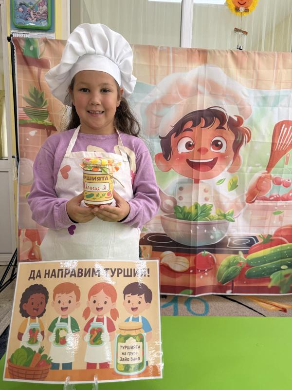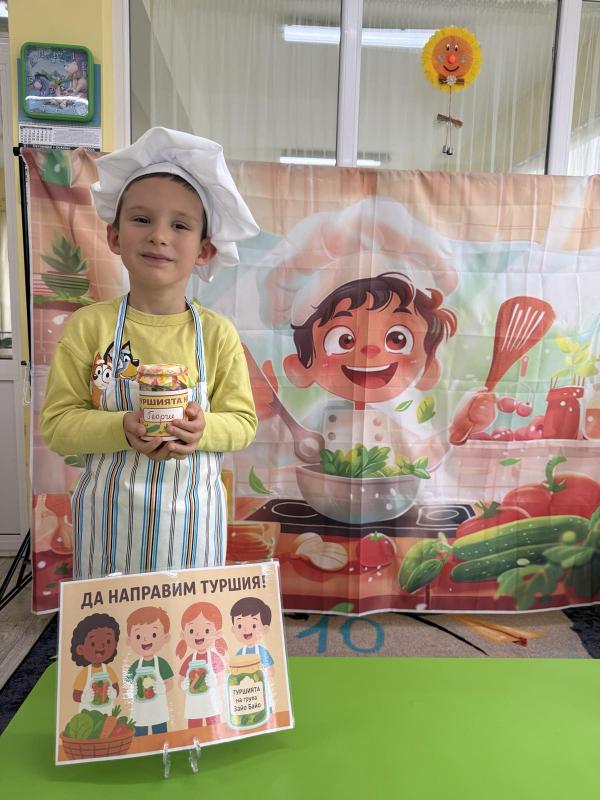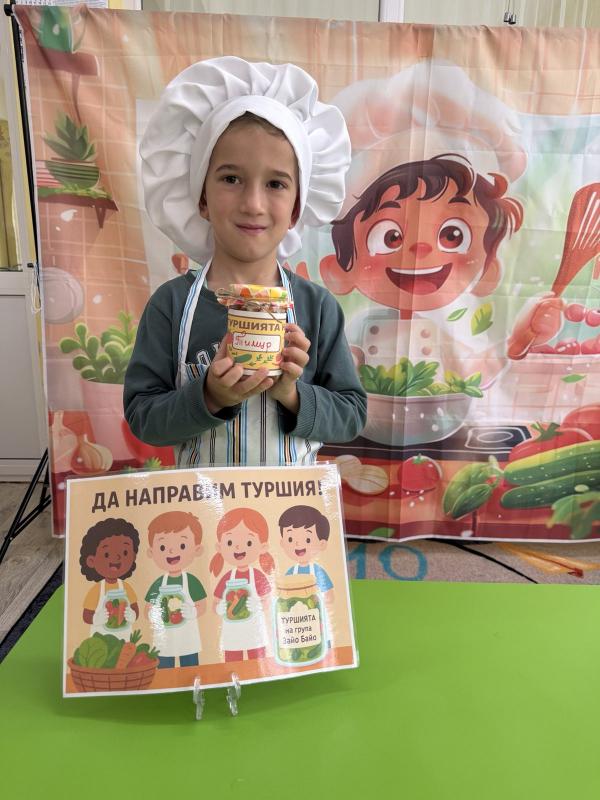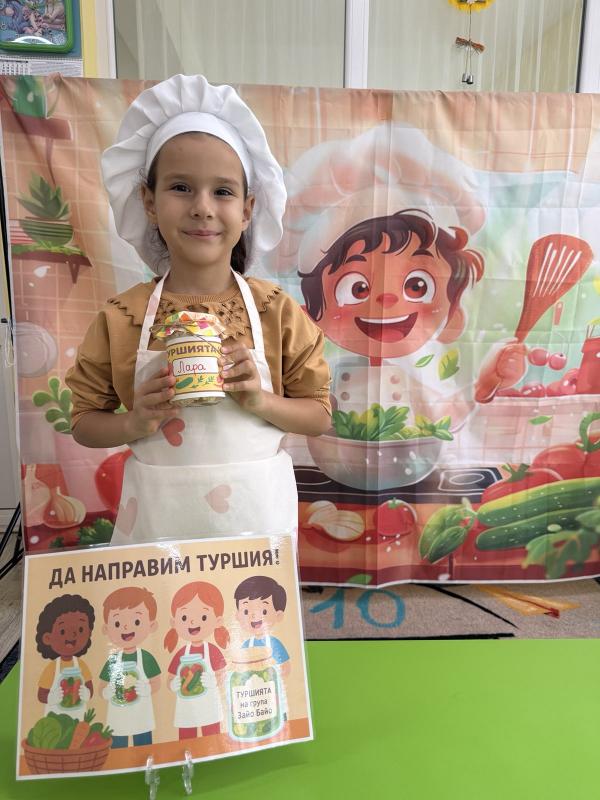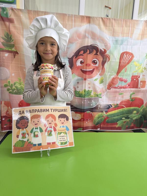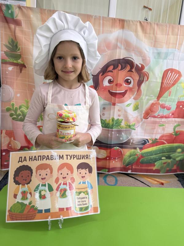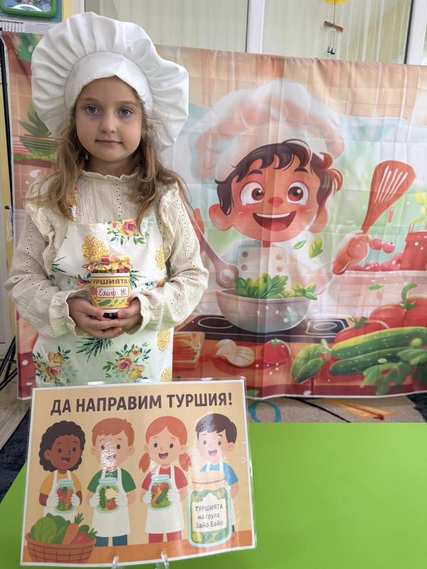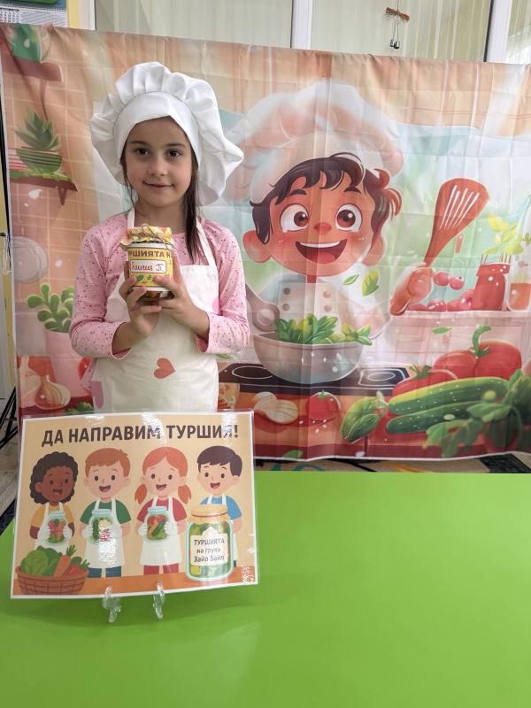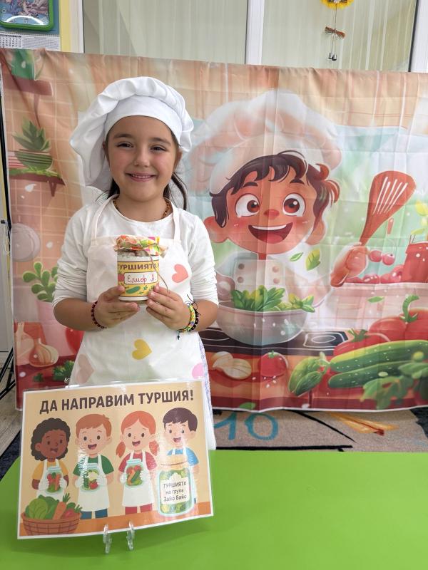 Малките кулинари се запознаха с различните зеленчуци - моркови, карфиол, чушки, зеле, краставички - и научиха как се приготвя традиционната българска туршия. Под ръководството на учителите, децата подреждаха и пълнеха своите бурканчета с пъстри зеленчуци.