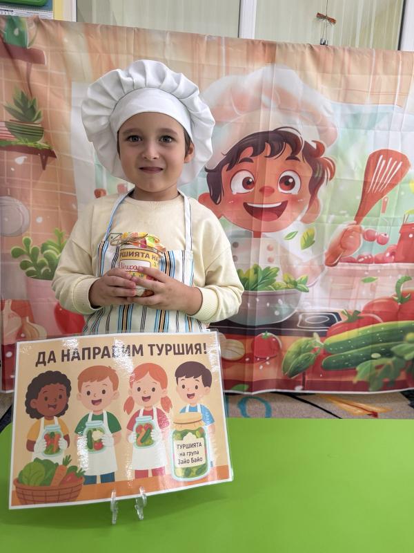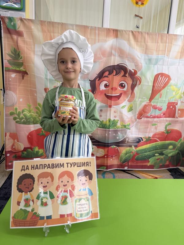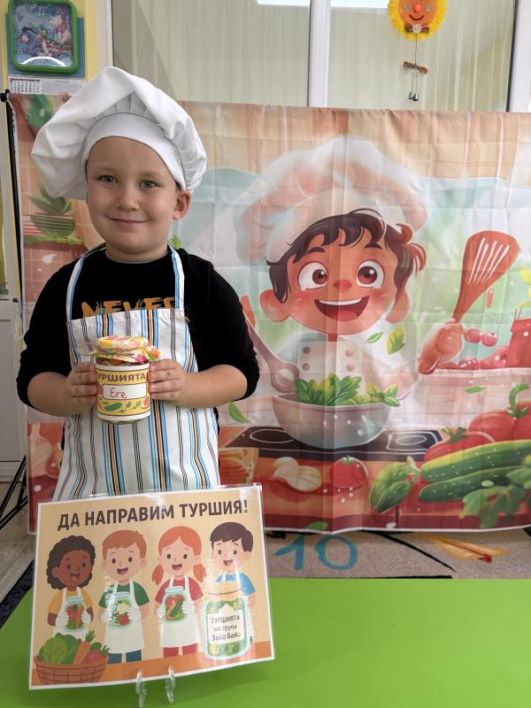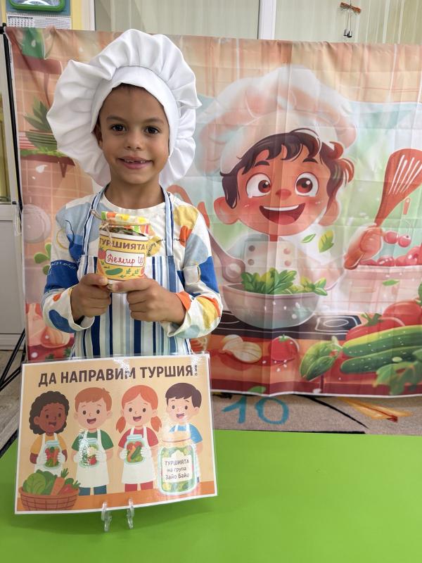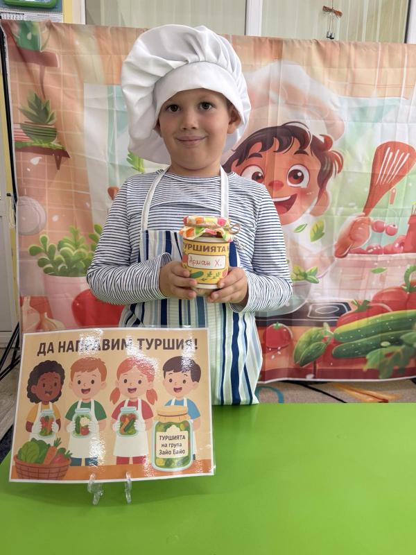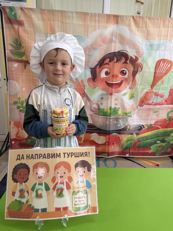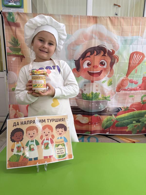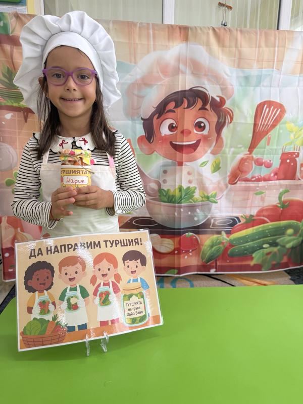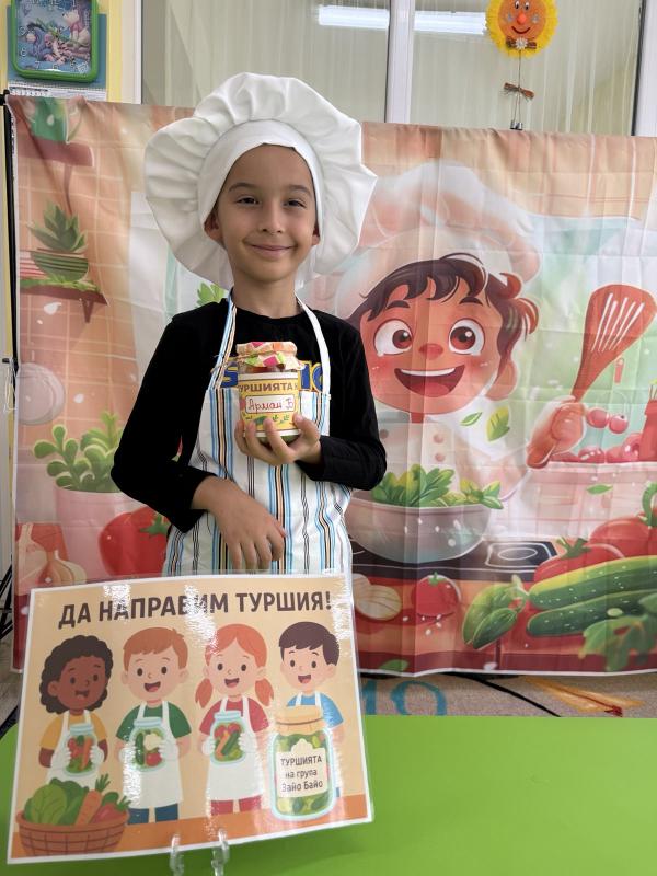 Малките кулинари се запознаха с различните зеленчуци - моркови, карфиол, чушки, зеле, краставички - и научиха как се приготвя традиционната българска туршия. Под ръководството на учителите, децата подреждаха и пълнеха своите бурканчета с пъстри зеленчуци.