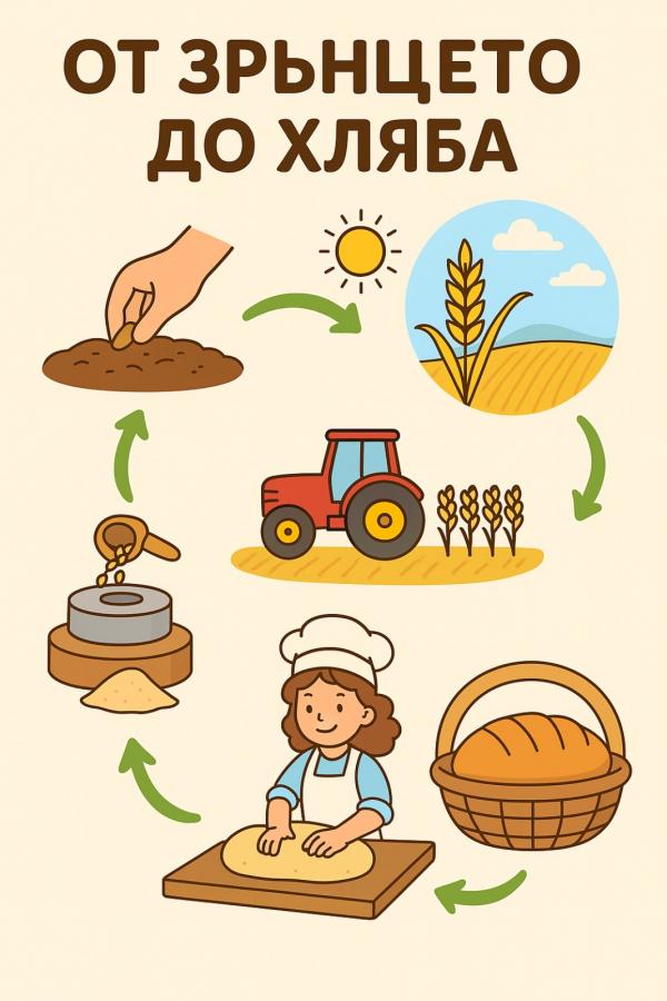 Малките откриватели подредиха сами стъпките на този чуден процес "От зрънцето до хляба". Благодарим на децата за труда, усмивките и любопитството им!