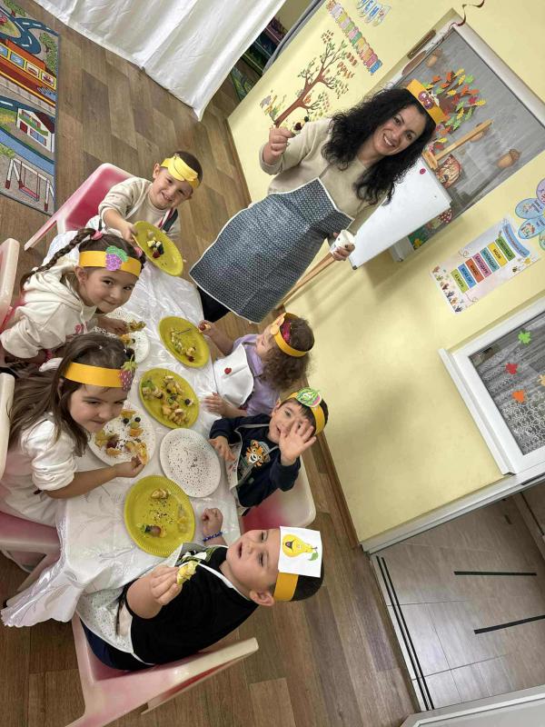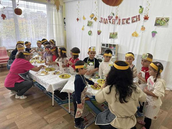 Тази практическа дейност бе изпълнена с много приятни емоции за децата и не само обогати знанията им за полезните храни, но се превърна и в ценен урок по организация и сътрудничество.